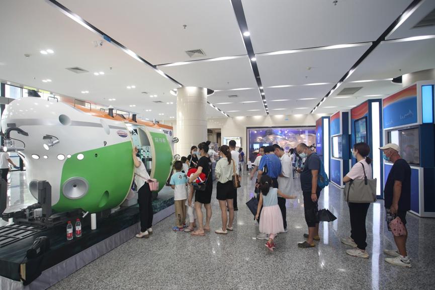 “奮斗者”號模型前排隊等候打卡的市民游客