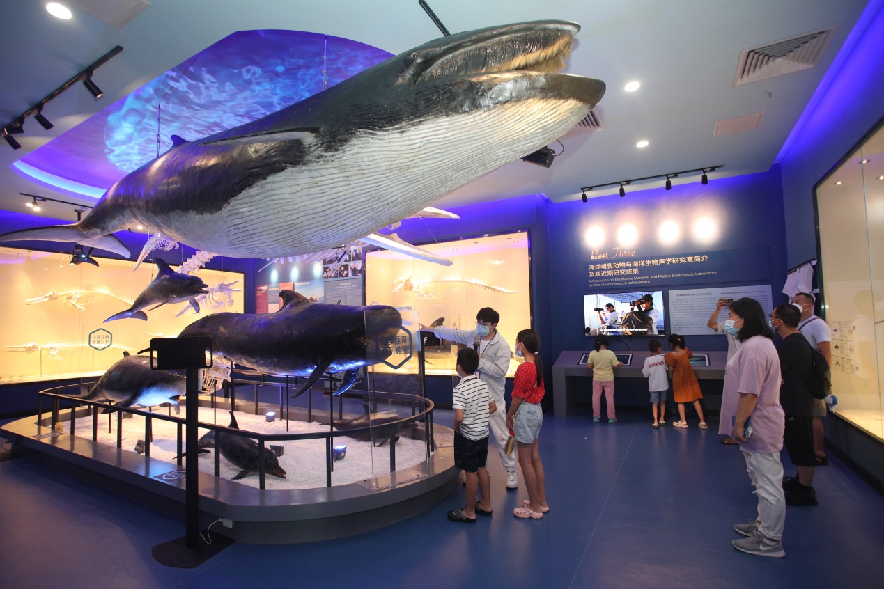在鯨豚標本館為公眾展示了大大小小、不同種類的鯨豚標本,講述鯨豚的進化過程,讓公眾仿佛置身于“大魚海棠”的奇幻世界中;海洋生態科普展則展示了鯨豚面臨的生存威脅,激發公眾保護海洋生態的熱情。