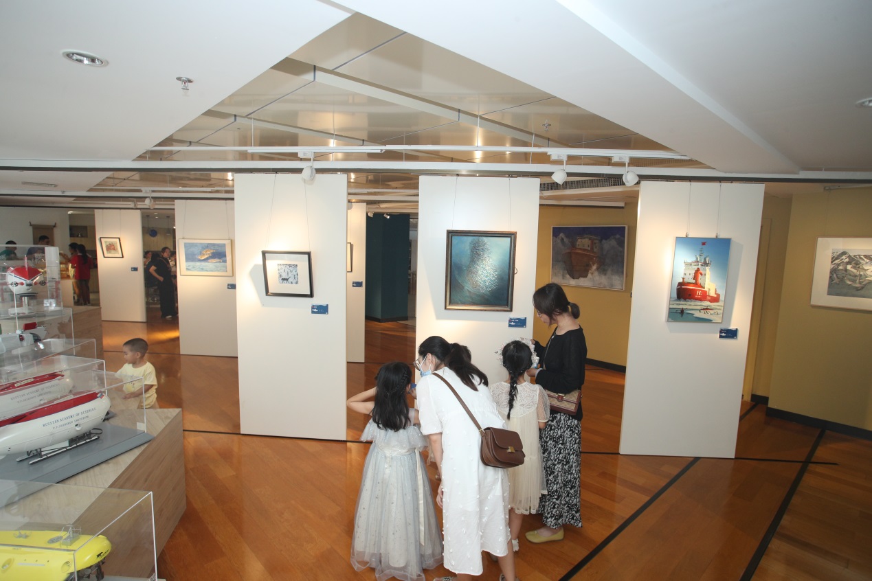 而在深??臻g的科學與藝術圖書館,“極地·深藍”藝術與海洋畫展備受歡迎,有別于其他活動場地,在這里,公眾可以放慢腳步,靜靜欣賞畫作的精美和想象力。