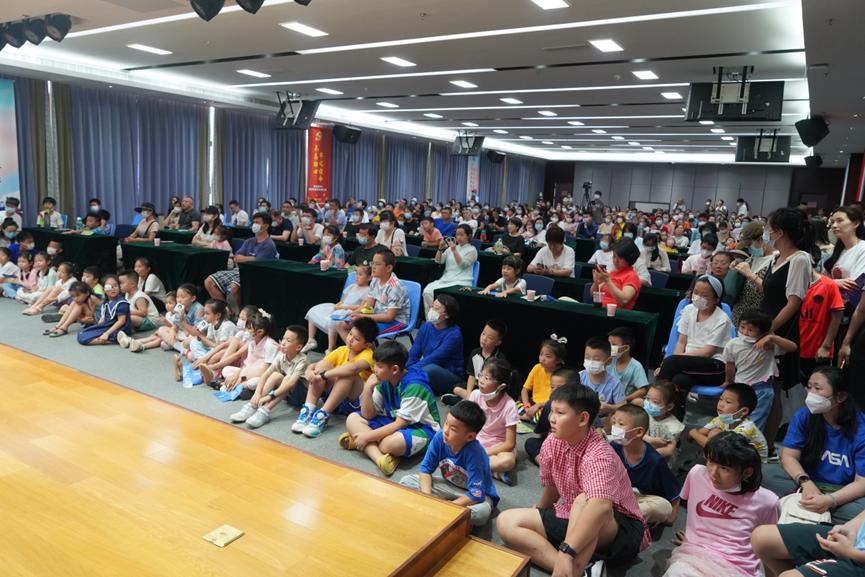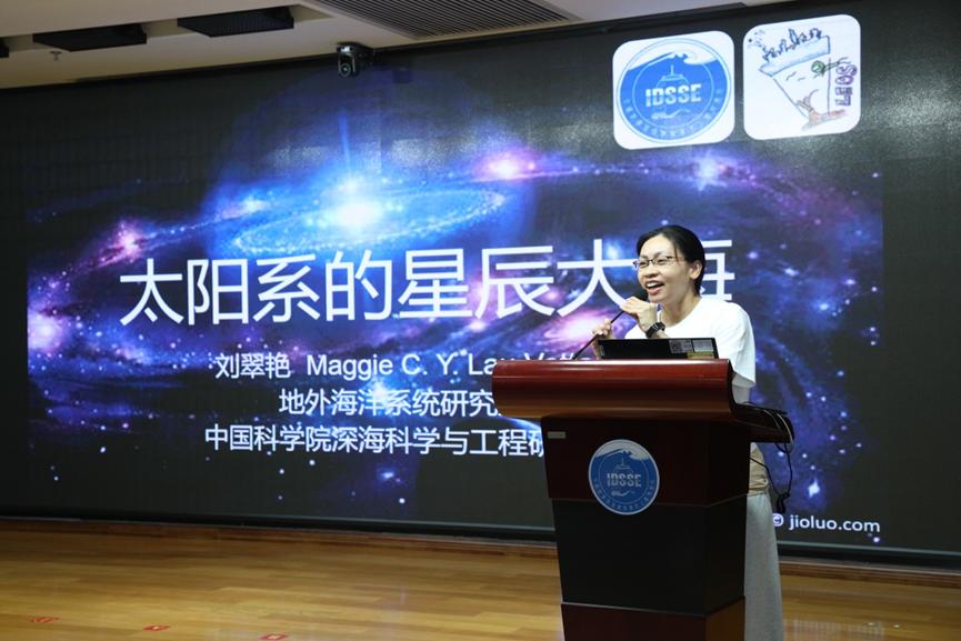 本次活動分為四個場次,每個場次都精心安排了科普講座。劉心成首席顧問為大家講述《我國建設海洋強國戰略的偉大實踐》,劉翠艷研究員帶領大家走出地球,漫游太陽系中其他星體上的海洋世界,程南飛助理研究員生動地向大家展示幾個實驗模擬的有趣現象,科普專員孔秀則帶領大家一同搭乘載人潛水器下潛到馬里亞納海溝的萬米深淵,見識那些千奇百怪的生命。講座現場座無虛席,過道甚至門口擠滿了旁聽生,小朋友們則坐滿講臺周邊。